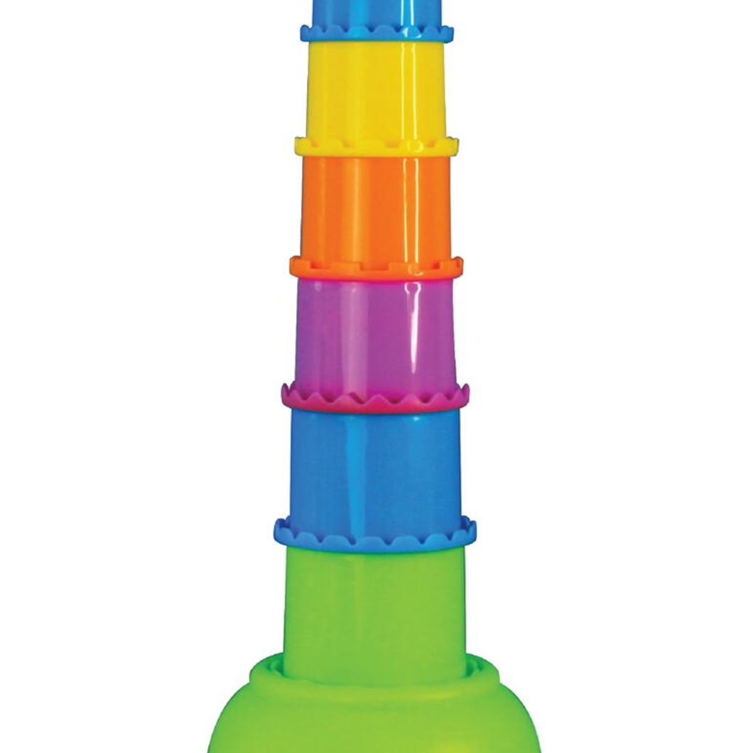 - in timp ce potrivesc piesele pentru a construi turnuletul, copilasii isi dezvolta dexteritatea si indemanarea, dar vor avea si ocazia de a invata sa recunoasca formele si culorile